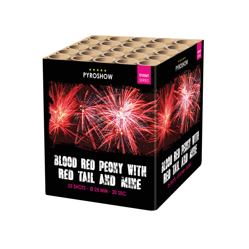 Blood Red Peony w.Red Tail and Mine Goedkoop vuurwerk kopen bij Vuurwerkwinkel Amersfoort