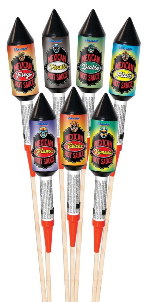 7- delig vuurpijlen assortiment met een bijzonder smaakvol en pittig design.