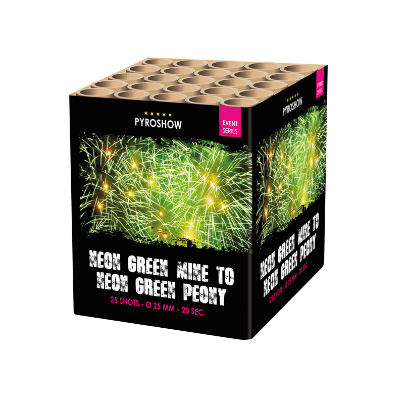 Neon Green Peony w.Green Tail & Mine Goedkoop vuurwerk kopen bij Vuurwerkwinkel Amersfoort