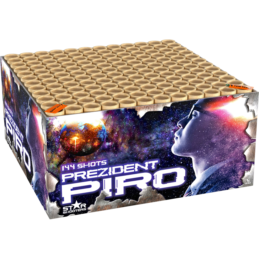 nKaliber 25 nAantal schoten 144 nBrand duur 90 Seconden Prezident Piro Goedkoop vuurwerk kopen bij Vuurwerkwinkel Amersfoort
