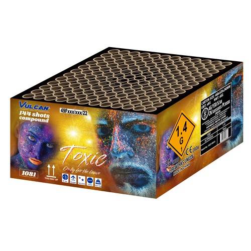 Bereid je voor op een giftige knalshow met de Toxic compound box! 144 destructieve schoten van een massief 25mm kaliber, deze box laat alles trillen op zijn grondvesten. Pas op, want deze knaller slaat in als een gifpijl en zorgt voor een explosief spektakel dat je zintuigen overrompelt en de straatstenen doet beven!